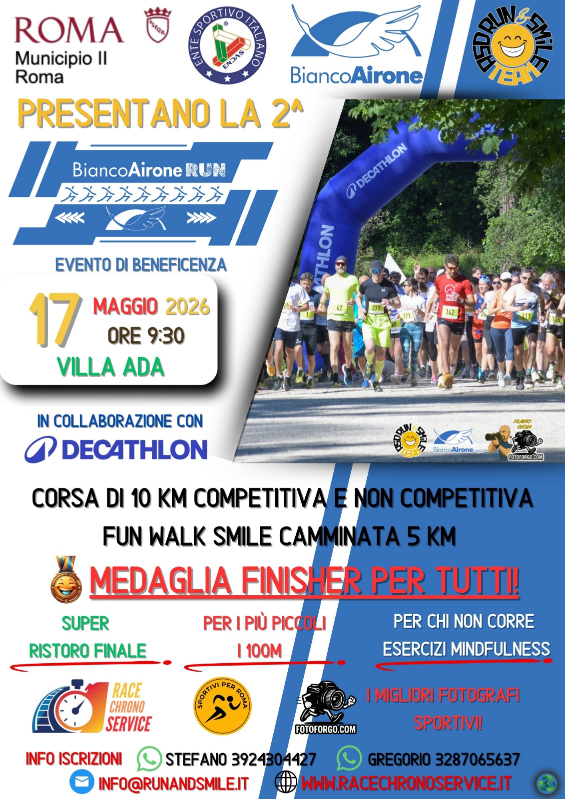 Organizzato da: Run&Smile, con la collaborazione di Decathlon Porta di Roma e Sportivi per Roma